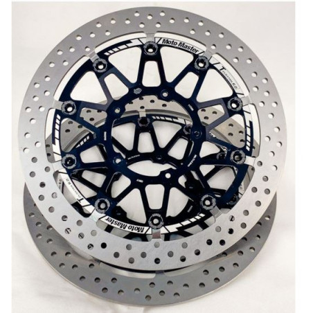 Die Moto-Master Bremsscheiben mit perforierter Bremsfläche wurden unter Verwendung der Erkenntnisse aus dem Rennsport entwickelt. Alle Bremsscheiben sind aus gehärtetem und veredeltem Chromolybdän-Stahl gefertigt, dies gewährleistet selbst bei extrem hoher Hitzeentwicklung Formstabilität, Schwingungsarmut und gleichbleibende Bremsleistung.