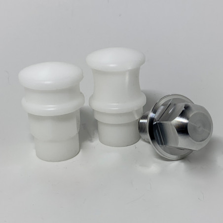 Speziale Alu Achsschraube aus hochfestem ALU 7075 gefertigt, ersetzt das Originalteil und ist gleichzeitig Gabelstandfußprotektor rechts!