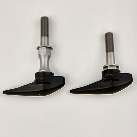Das Set wird anstelle der vorderen originalen Motorbolzen montiert. Am Ende der Bolzen kann man die Hart - Plastikteile auf die vorgefertigten Sitze montieren,gesichert werden diese mit zwei Splinten .Dieses bietet einen optimalen Schutz des Rahmens vorne links vorne rechts im Falle eines Sturzes.